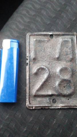 Обзавёлся вот таким номером, буду восстанавливать. Подскажите, какого цвета были символы у такого типа номеров. Как удалось углядеть из скудных остатков краски, фон верхнего и нижнего обозначения был голубым. А фон цифр такойже был? А то имеются какие-то совсем мелкие остатки краски и похожей на жёлтую и красную.